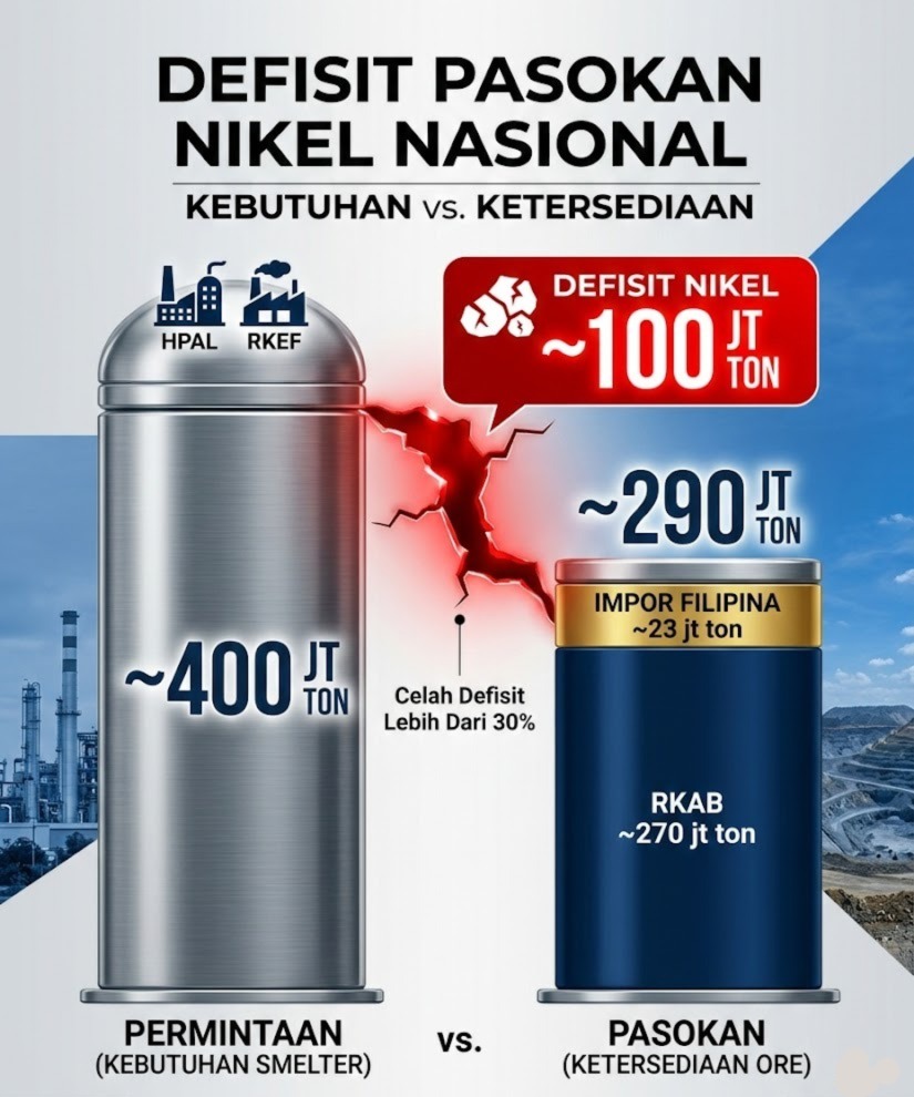 Pemotongan kuota ini memicu krisis pasokan bahan baku yang parah bagi fasilitas pengolahan dan pemurnian (smelter) di dalam negeri. Asosiasi Penambang Nikel Indonesia (APNI) mencatat bahwa total kebutuhan bijih nikel untuk smelter, baik yang berbasis HPAL maupun RKEF, mencapai 380—400 juta ton pada tahun ini. Dengan kuota RKAB maksimal 270 juta ton, terdapat defisit pasokan sekitar 90 juta hingga 100 juta ton. Upaya menutupi kekurangan pasokan melalui impor juga diproyeksikan tidak akan mencukupi. Filipina sebagai pemasok alternatif utama diperkirakan hanya mampu mengekspor 22—23 juta ton ke Indonesia, karena dari total 50 juta ton produksinya, mayoritas telah terikat kontrak jangka panjang dengan China. Pilihan impor dari negara penghasil nikel lainnya seperti Kaledonia Baru dan Papua Nugini juga dinilai tidak memungkinkan karena produksi mereka difokuskan untuk kebutuhan domestik.